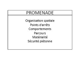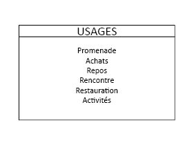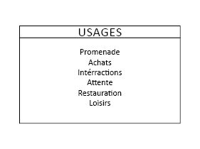 La première étape de construction du jeu participatif a été le choix des grandes thématiques et mots associés qui constituent le jeu de cartes. C’est à partir de la relecture des travaux des étudiants de l’IUAR et de l’ENSAM que les premières thématiques relatives aux usages, dynamiques et caractéristiques des centres commerciaux ont émergé : usages, offre, environnement, sécurité, accessibilité, promenade et aménagement.