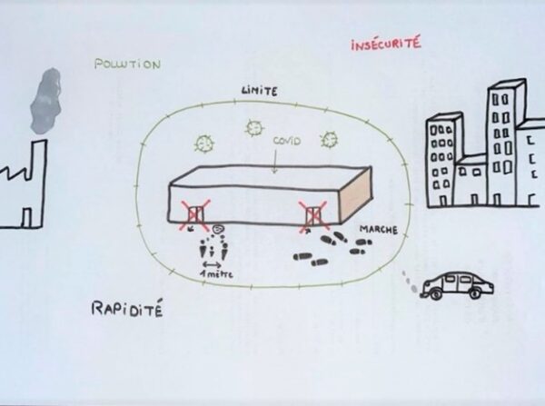 La vision partagée n’était qu’une idée. Il était désormais nécessaire de se pencher sur une matérialisation de notre projet. Comment développer une proposition quand nous voyions qu’il en existait une multitude ? Afin d’initier la dynamique, nous nous sommes imposé un exercice : jeter une ébauche sur le papier, une intuition en dix minutes maximum. Cela a exigé de se faire confiance, de réfléchir vite, sans appréhension de jugement.