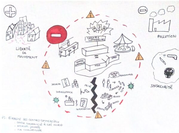 Le 1er mars 2021, dans le cadre de la restitution du projet De l’(in)hospitalité des centres commerciaux à la soutenabilité de l’urbanisme commercial. Analyse urbaine de sites existants en région PACA et regards prospectifs, co-porté par l’IUAR et l’ENSA•M, en réponse à l’appel à projet “ Fabriques de la connaissance, 2019-2020 « , financé par la Région Sud,nous avons présenté la proposition de jeu dont nous détaillons les phases d’élaboration ci-dessous.